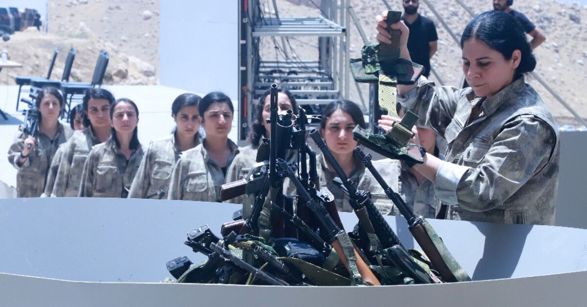 في حفل تتم إدارته ببراعة عبر الحدود في العراق يوم الجمعة ، دمر أعضاء مجموعة المتمردين الكردي PKK أسلحتهم كجزء من عملية السلام الجارية مع الدولة التركية.