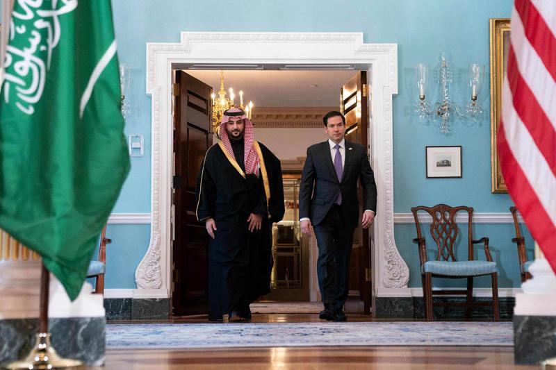 وقالت وزارة الخارجية الأمريكية إن روبيو سيلتقي ولي العهد محمد بن سلمان ، حاكم المملكة بحكم الواقع ، في جدة وزارة الخارجية الأمريكية. التقى وزير الدفاع السعودي خالد بن سلمان في واشنطن في فبراير.