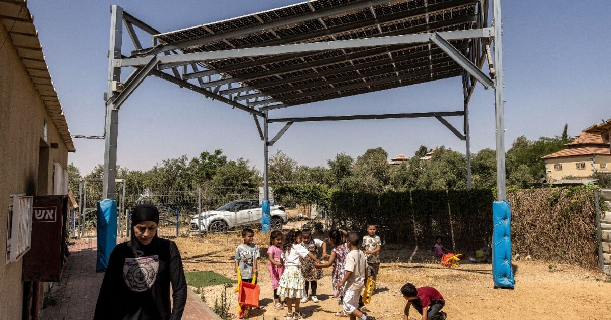 في نهاية طريق متربة في جنوب إسرائيل ، خارج قرية بدوين من المنازل غير المكتملة والقبة اللامعة للمسجد ، وهو حقل من الألواح الشمسية يتلألأ في الشمس الصحراوية الساخنة.