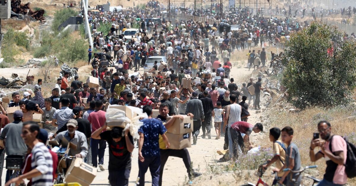 تقوم مؤسسة غزة الإنسانية (GHF) التي تدار من قبل الأمن الأمريكي المتعاقد معها مع القوات الإسرائيلية في المحيط ، بتوزيع الطعام من خلال عدة محاور في قطاع غزة الذي تم نقله الحرب.