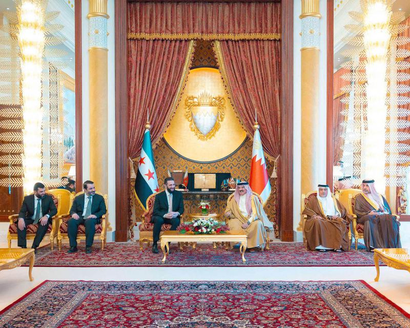 قال وسائل الإعلام الحكومية البحرية ، إن ملك بحين الباهرين عيسى الخطية يوم السبت ، رحب الرئيس السوري أحمد الشارا.