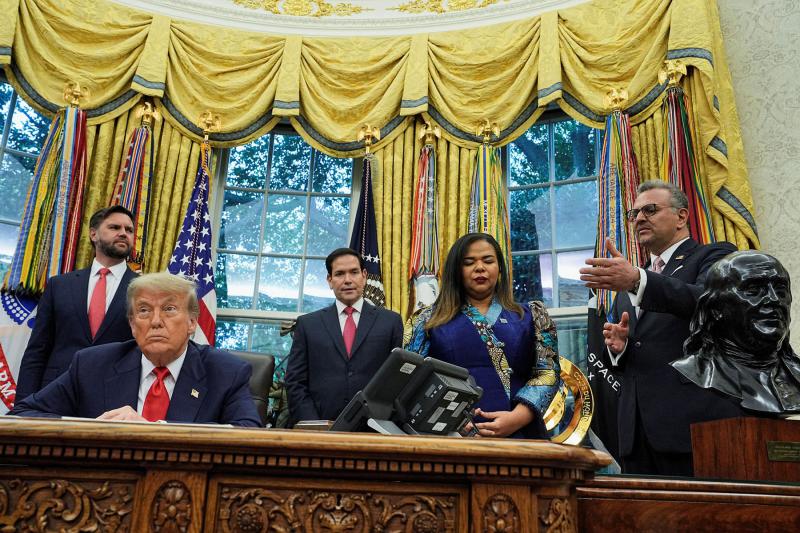 صادر الرئيس ترامب ، الذي جعل استعادة القيادة الأمريكية على المسرح العالمي أولوية ، معترفًا بأهمية اتفاق ، هذه اللحظة من خلال استضافة التوقيع في المكتب البيضاوي. وقد أشاد علنًا بالصفقة كإنجاز إنساني وحركة استراتيجية لتأمين سلاسل التوريد الحرجة وسط منافسة متزايدة مع الصين.