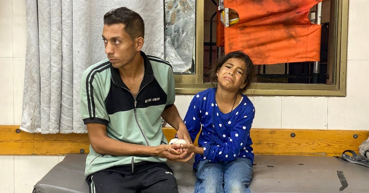 أظهرت صور AFP من مستشفى ناصر القريب ، في مدينة خان يونس ، أن المسعفين يعاملون الأطفال الصغار المغطاة بالدم.