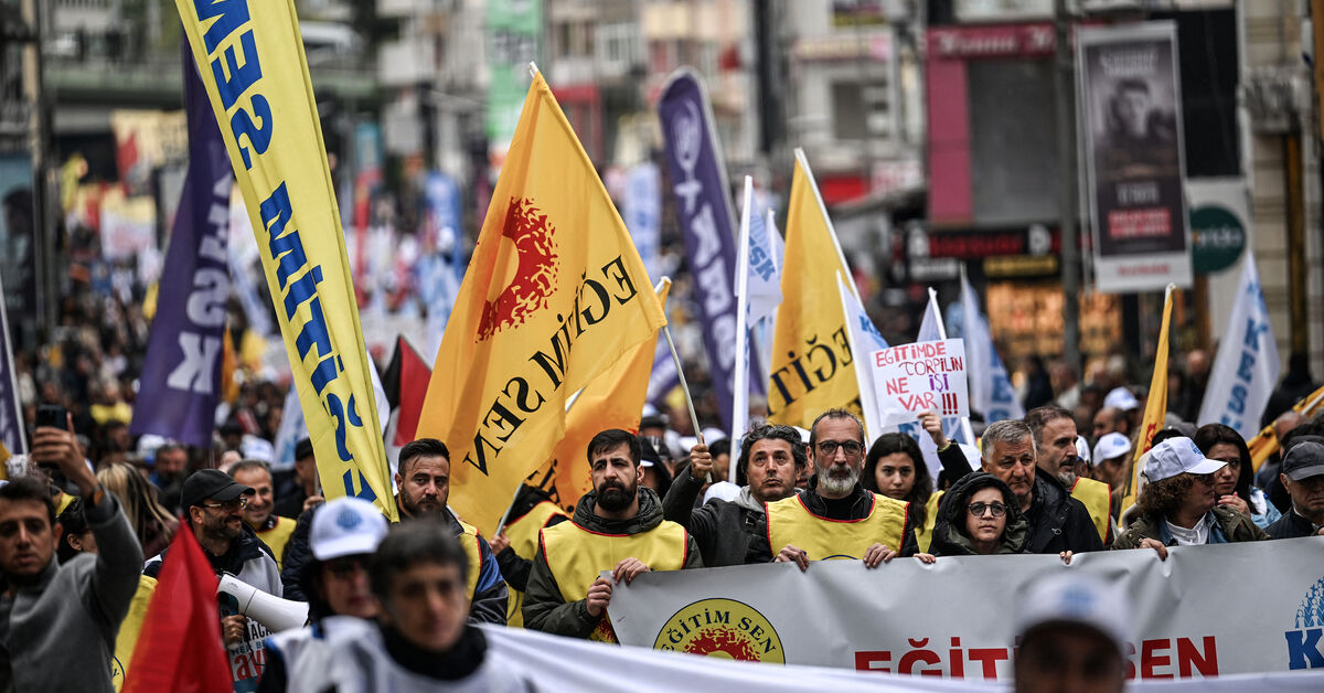 انضم رئيس CHP Ozgur Ozel إلى مظاهرات يوم مايو في Kadikoy في الجانب الآسيوي في إسطنبول ، نظمتها النقابات العمالية.