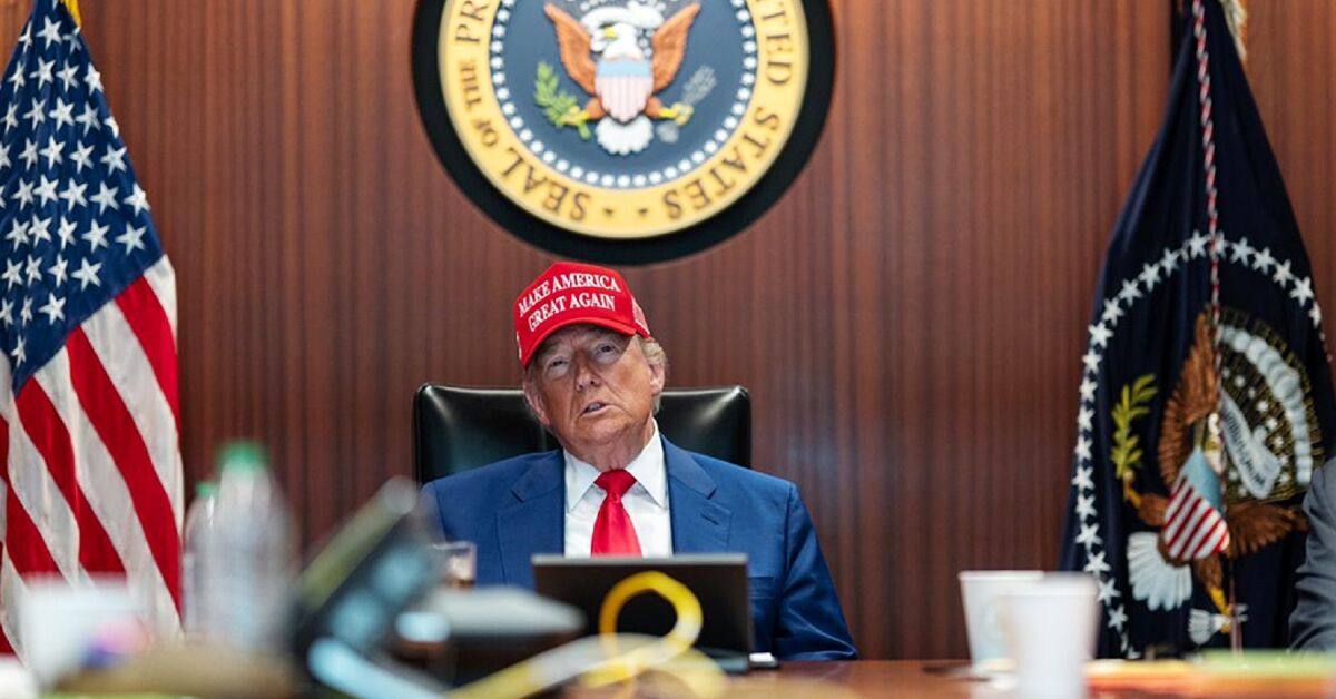 ثم أصدر البيت الأبيض صورًا لترامب مينور في غرفة الموقف ، وهو يرتدي حمراء “اجعل أمريكا عظيمة مرة أخرى” قبعة البيسبول.