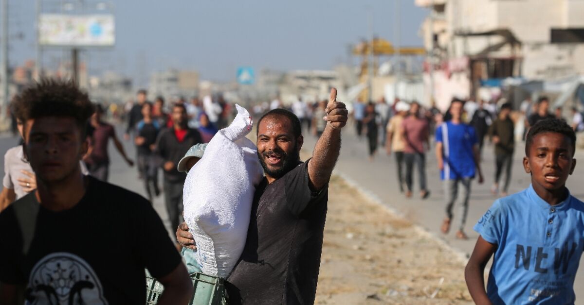 وأظهرت لقطات AFP حشودًا من الفلسطينيين الذين اقتحموا مستودعًا على أساس البرنامج في دير البلا ويأخذون أكياسًا من الإمدادات الغذائية الطارئة مع طلقات نارية.