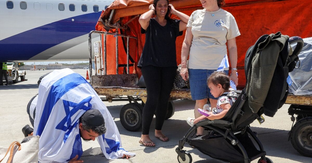 ابتسمت العائلات التي تحمل الأعلام الإسرائيلية المصغرة وهي تنطلق من الطائرات عند عودتها. ركع بعض وقبلة مدرج المطار.