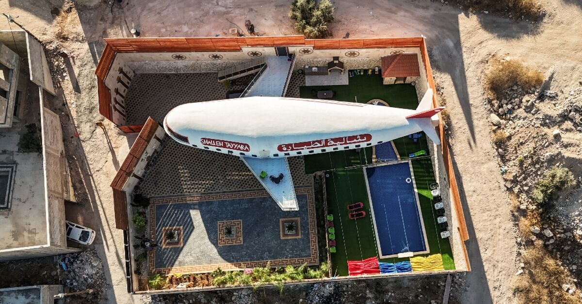 إن دار الضيافة على شكل طائرة ستبرز في أي مكان في العالم ، ولكن في الضفة الغربية المحتلة الخالية من المطارات ، يساعد إنشاء Minwer Harsha على الطيران في رحلة الطيران.