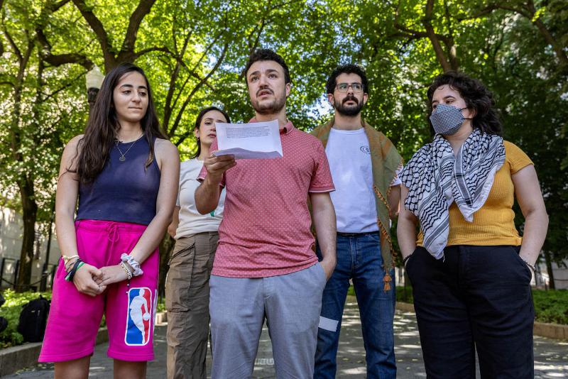 قال عمال طلاب اتحاد كولومبيا في بيان إن الطالب ، محمود خليل في كلية الشؤون الدولية والعامة بالجامعة ، اعتقل من قبل وكلاء الأمن الداخليين الأمريكيين في مقر إقامته الجامعية يوم السبت. وقال الاتحاد إن زوجته مواطن أمريكي ، حامل في الثامنة من عمره ، وفقًا للتقارير الإخبارية ، وهو يحمل بطاقة خضراء دائمة في الولايات المتحدة.