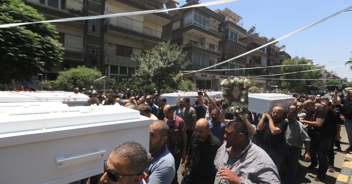 إلى الضحك والدموع ، تم نقل تسع توابيت بيضاء في الكنيسة ، وسط وجود أمنية شديدة في المنطقة.
