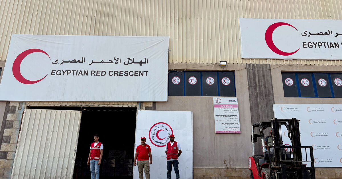 موقع لوجستي الذي أنشأه الهلال الأحمر المصري بالقرب من مدينة El Arish ، على بعد 40 كم (25 ميلًا) من الحدود ، حيث يتم تحميل الشحنات القادمة من مصر إلى غزة ، تحتوي على مستودع من خيمة القنب المكرز للبضائع التي عدت من الحدود.
