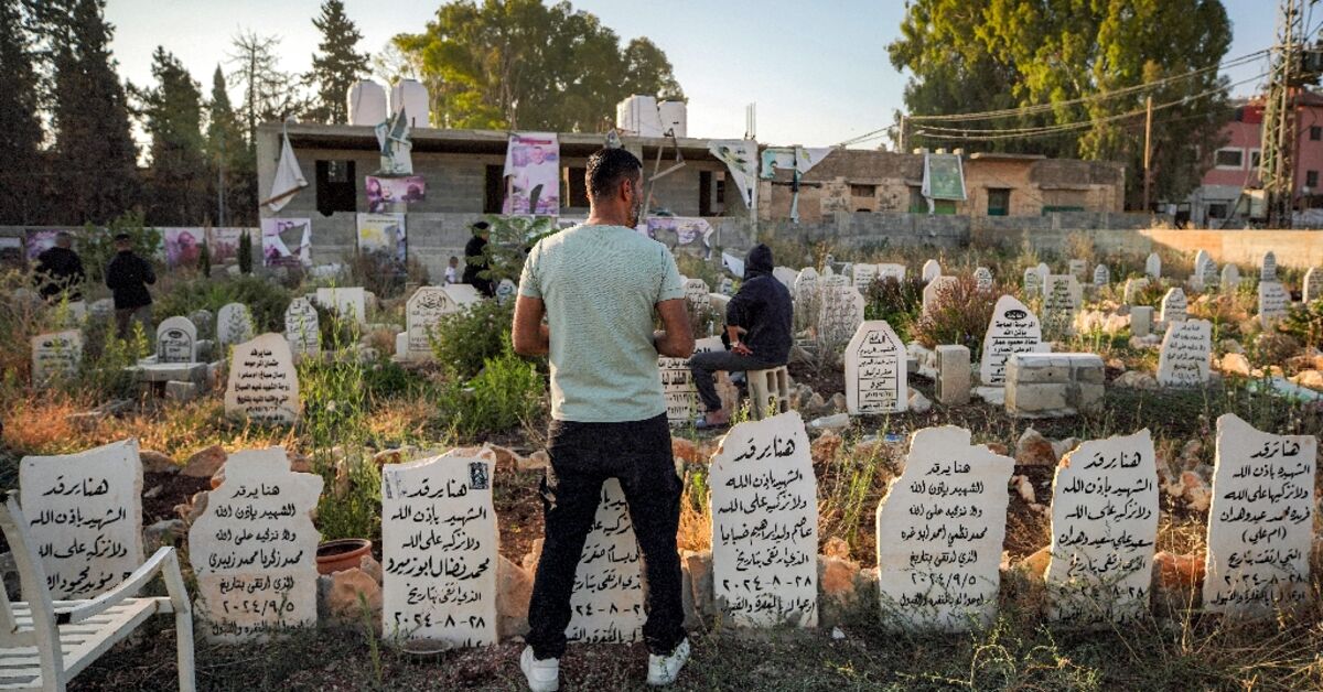تم تزيين العديد من القبور “الشهيد” – وهو مصطلح يطبق على نطاق واسع على المدنيين والمسلحين الفلسطينيين الذين قتلوا على يد إسرائيل – بصور شبان يحملون الأسلحة.