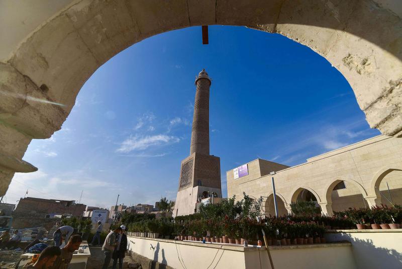 يعد Minaret and Mosque أحدث المعالم في الموصل التي يتم استعادتها من قبل هيئة التراث التابعة للأمم المتحدة اليونسكو ، التي عملت فرقها لمدة خمس سنوات لإحياء العديد من المواقع هناك.