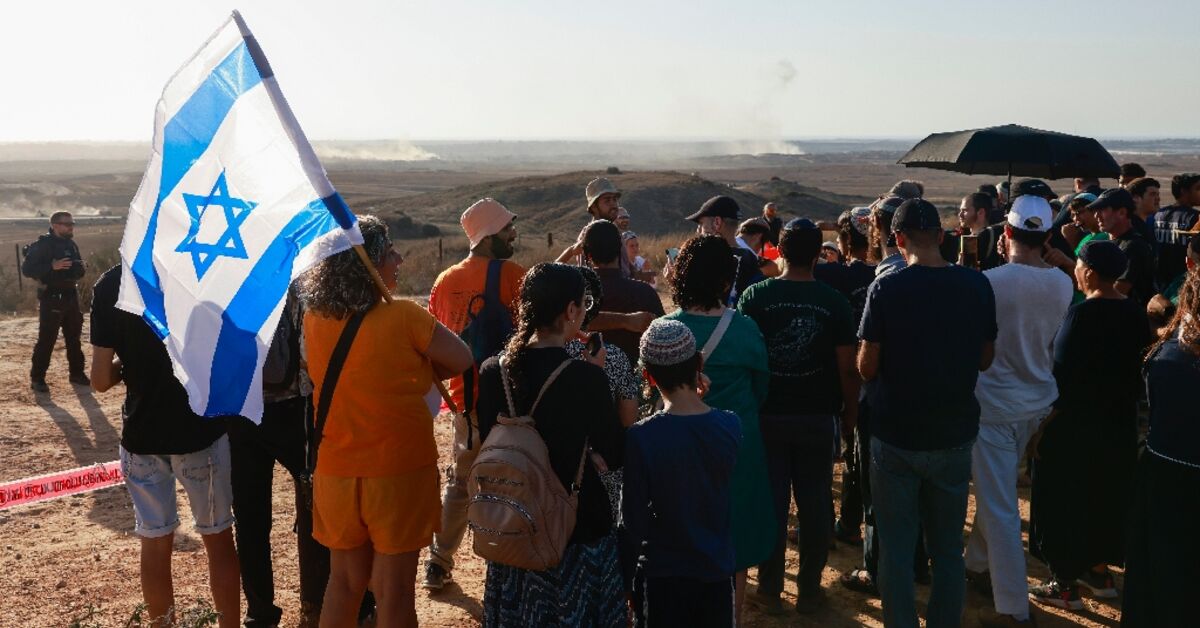 يلوح بالأعلام الإسرائيلية إلى جانب لافتات Orange لـ Gush Katif – وهي كتلة من المستوطنات التي تم تفكيكها في عام 2005 – ذهب المسيرون من مدينة Sderot إلى نقطة مراقبة Asaf Siboni ، ويطل على أنقاض بيت هانون.