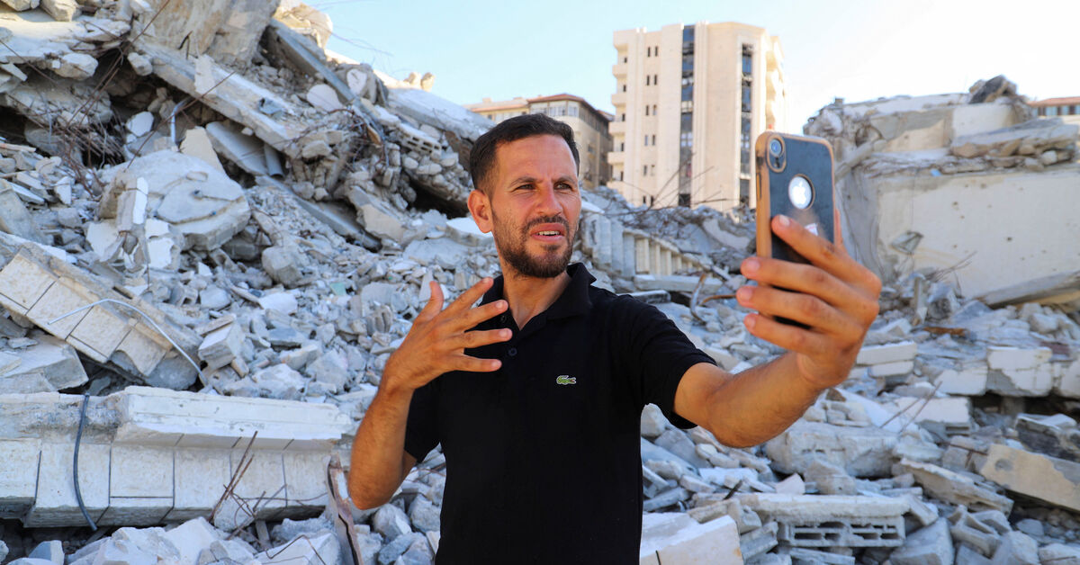 وقف غزة (رويترز) -باسيم الحبل بين أنقاض غزة ، مع الناس مسطحين على الأرض في كل مكان حوله عندما طار الرصاص ، وتصوير نفسه باستخدام لغة الإشارة لشرح مخاطر الحرب على زملائه الفلسطينيين الصم وأتباعه على وسائل التواصل الاجتماعي.