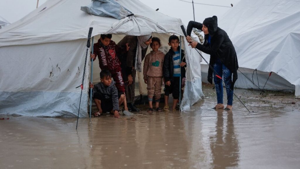 وحفر الفلسطينيون، الذين يرتدون الصنادل والسترات القطنية فقط لحماية أنفسهم من أمطار الشتاء، خنادق في الأرض الموحلة حول خيامهم في حي الزيتون بمدينة غزة...
