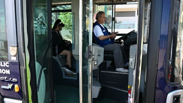 في شوارع بيروت الفوضوية المختقة بالسيارات ، ركوب الطالب اللبناني فاطمة فاكيه حافلة أرجوانية لامعة إلى الجامعة ، واحدة من أسطول نشرتها السلطات لإحياء...
