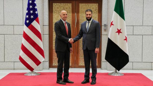 دمشق أثار مبعوث سوريا المعين حديثًا للولايات المتحدة توماس بارك العلم الأمريكي على مقر إقامة السفير يوم الخميس للمرة الأولى منذ إغلاق السفارة الأمريكية...