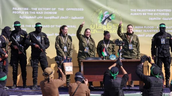 وكان الرهائن الإسرائيليون الأربعة الذين سلمتهم حماس يوم السبت للصليب الأحمر، وهم يحملون أكياس هدايا تحمل علامة حماس ويرتدون ملابس عسكرية، يلوحون بأصابعهم ويرفعون...