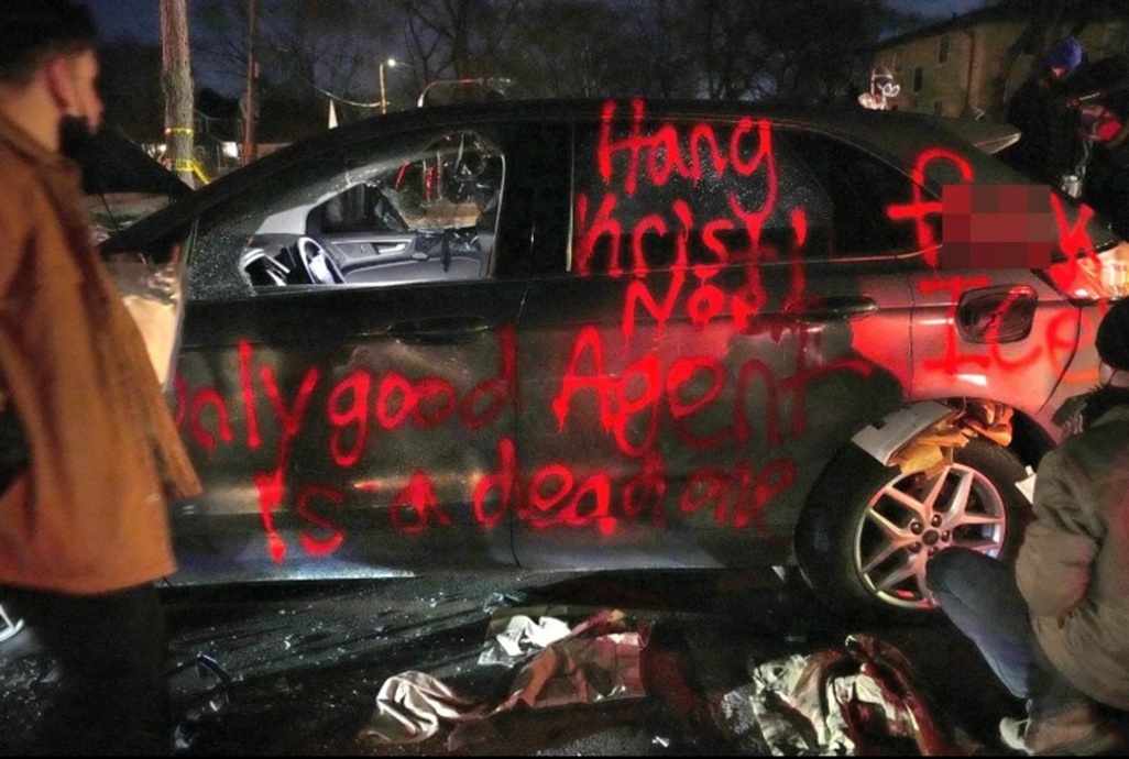 بالإضافة إلى ذلك، عُثر على رسائل تهديدية كُتبت بطلاء أحمر على المركبات، تستهدف بشكل مباشر وزيرة الأمن الداخلي كريستي نويم، وتدعو إلى إيذائها. كما تضمنت الشعارات عبارات معادية لهيئة الهجرة والجمارك، وتمجد العنف ضد موظفيها، مما يعكس عمق الانقسام والغضب السائدين.
